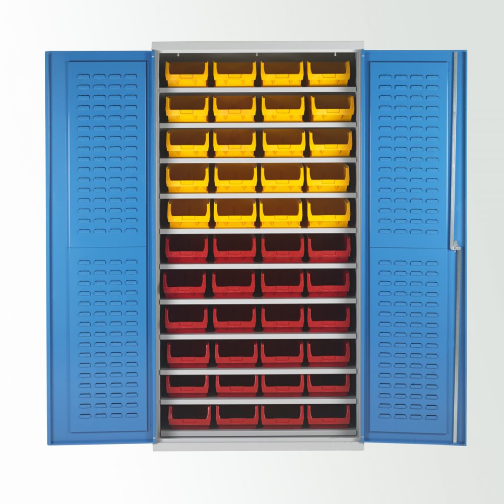 11 Shelf Bin Cabinet Shelf Support c/w 48 bins 1000mmW x 2000mmH Blue