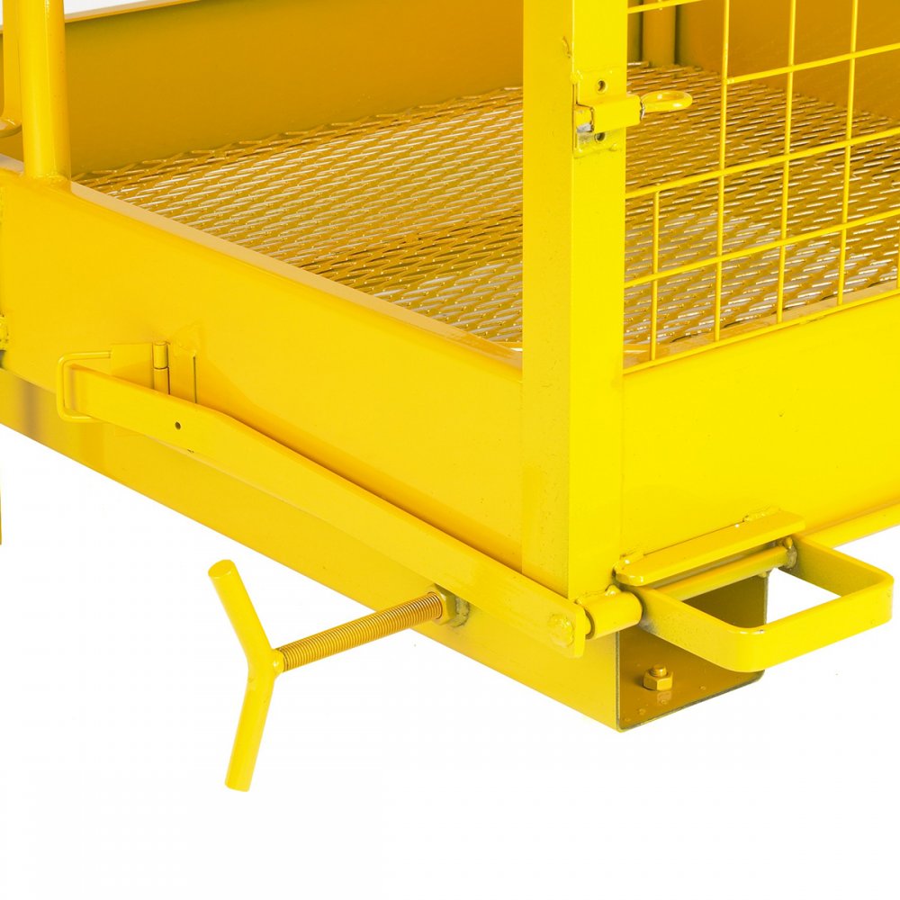 Platform locks onto the forklift truck forks with threaded screw jacks