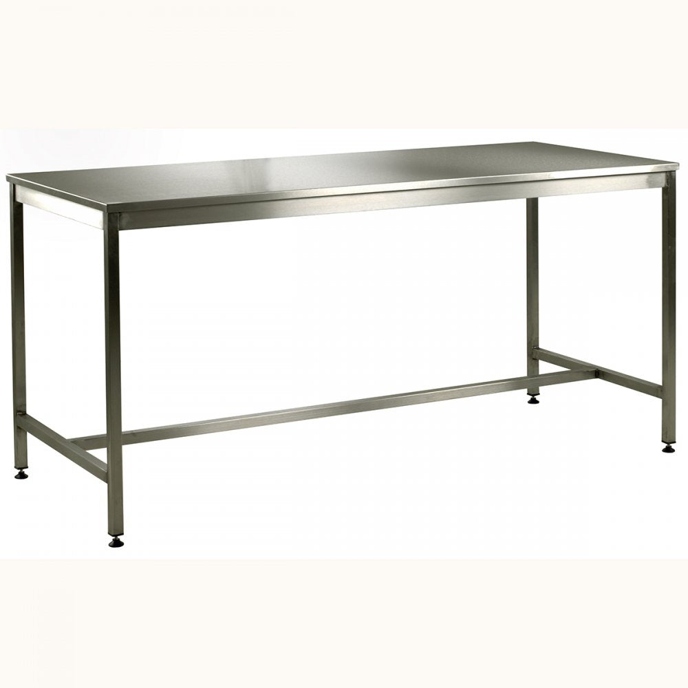 Overall Length mm: 1200, 1500, 1800 Overall Width mm: 600, 750, 900 Capacity (UDL-kg): Workbenches and tables for clean and hygienic work environments Choice of 3 lengths: 1200, 1500 or 1800mm Choice of 3 depths: 600, 750 or 950mm Standard height 840mm Fully welded with 32x32mm legs with adjustable feet Manufactured from 1.2mm thick Grade 304 stainless steel 50x25mm and 25x25mm cross members All edges turned down Removable worktop