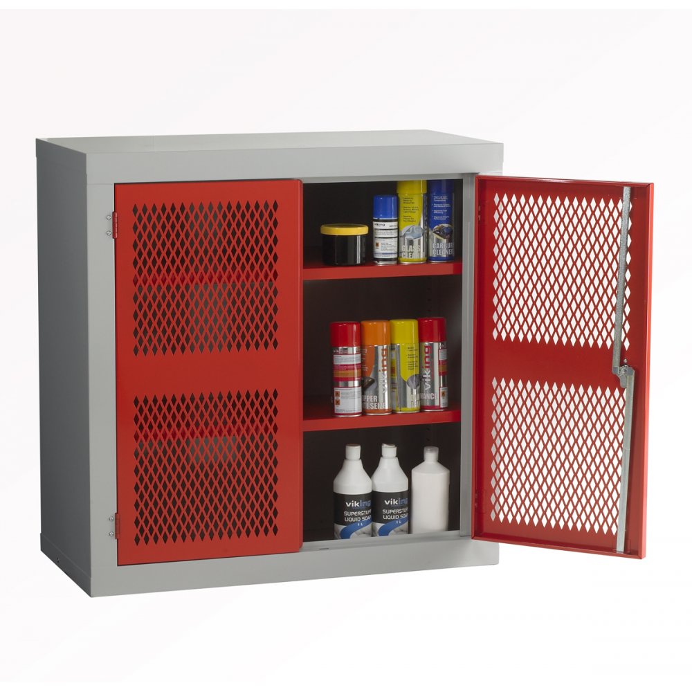 Mesh Door Cabinet 915mmW x 1000mmH 1 Shelf Red