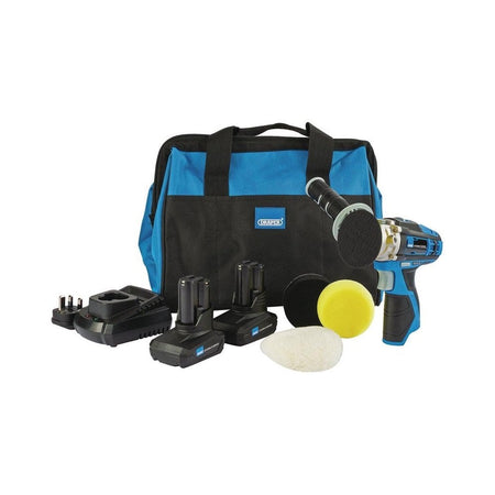 Part of the Draper Storm Force® 10.8V Interchange range, this superb kit features a variable speed Mini polisher with an 80mm flat buffing sponge and a 110mm polishing pad. Complete with 2 x 4Ah li-ion batteries, a one - hour charger and a 320mm water repellant, hard bottom tool bag for easy transportation and storage.