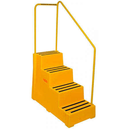 4 Tread Yellow Non Slip Plastic Steps 1620h X 490w x 1080dmm C/w Yellow Handrail