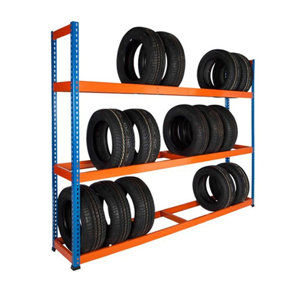 PQ400 Tyre Rack 1980h x 2134w x 455d mm 3 Levels 200kg UDL Blue & Orange