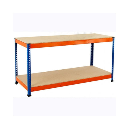 Workbench 915h x 1830w x 760d mm 2 Levels 400kg UDL Blue & Orange